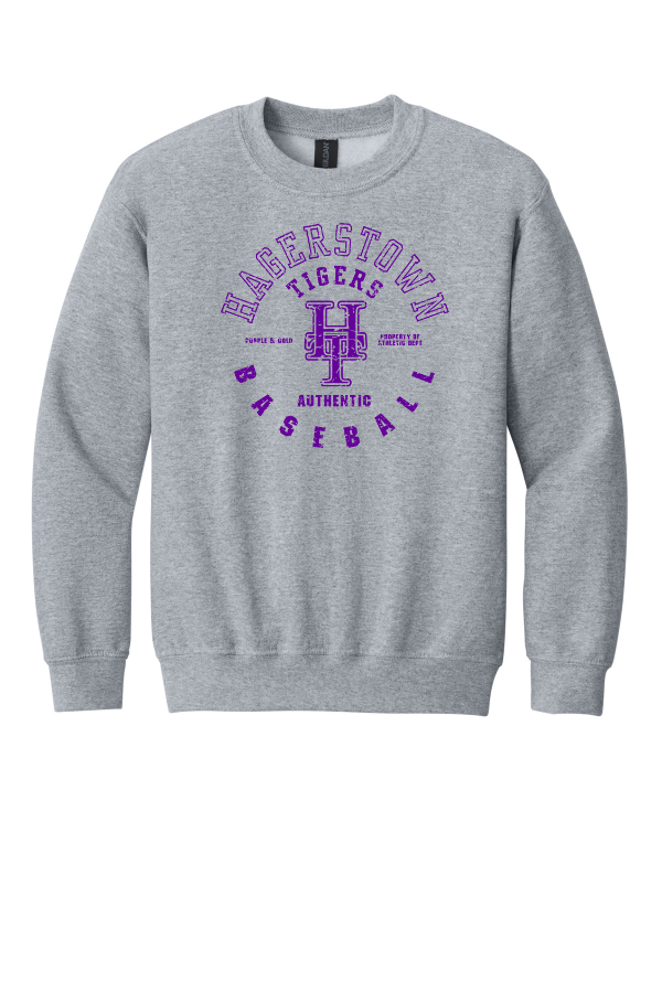 YOUTH Hagerstown Baseball Crewneck Sweatshirt Gildan - Youth Heavy Blend Crewneck Sweatshirt. 8-ounce 50/50 cotton/poly Double-needle stitching at waistband and cuffs 1x1 rib knit collar cuffs and waistband with spandexRecycled high-performing black tear-away labelPlease note: This product is transitioning from tear-away labels to recycled high-performing black tear-away labels. Your order may contain a combination of both labels. Product Spec Sheet