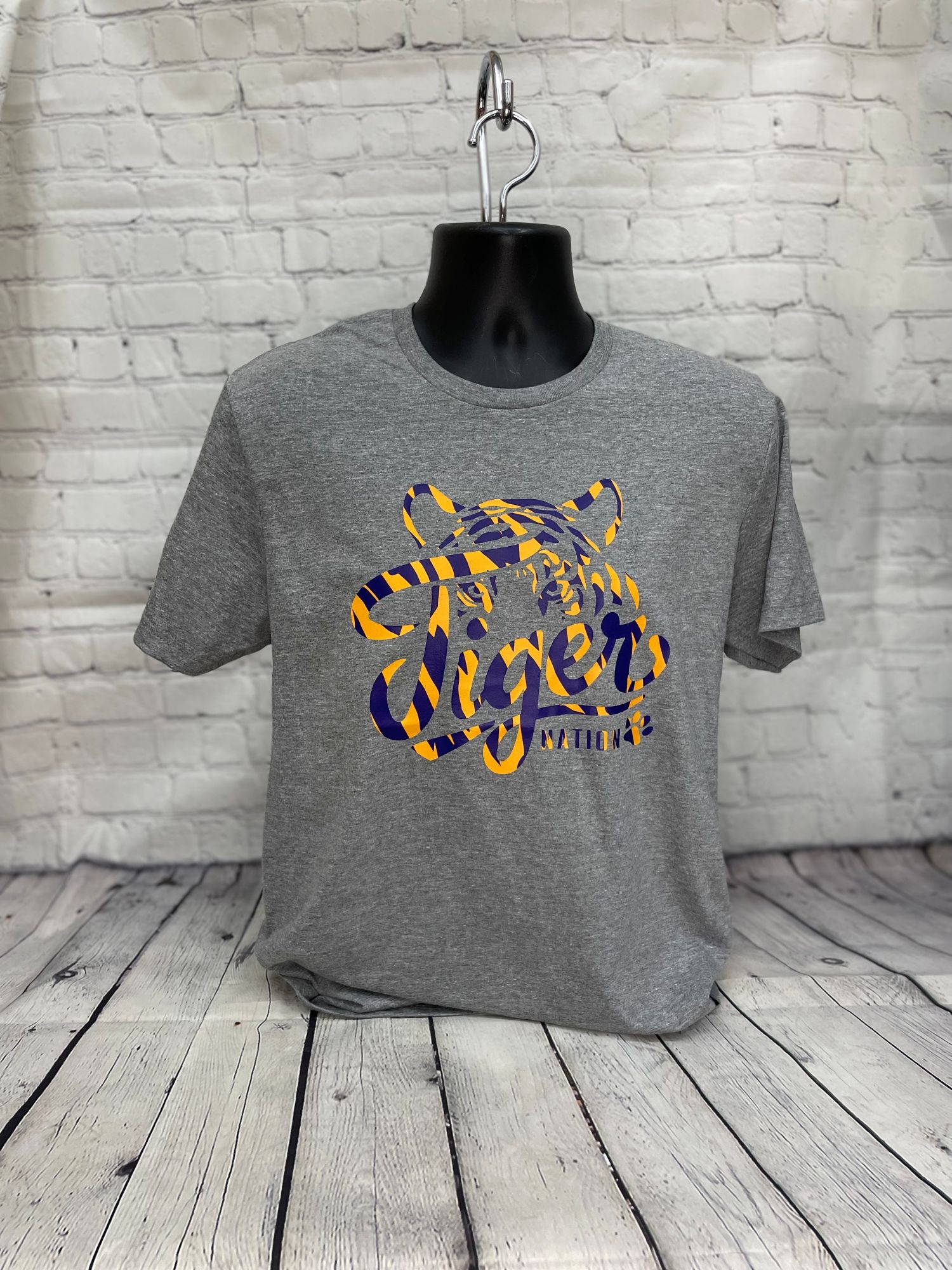 | Tiger Nation StripesGildan Softstyle T-Shirt. (DTF)4.5-ounce 100% ring spun US cotton 90/10 ring spun cotton/poly (Antique Cherry Red Antique Heliconia Antique Sapphire and Sport Grey)50/50 ring spun cotton/poly (Graphite Heather)65/35 poly/ring spun cotton (Dark Heather Heather Berry Heather Cardinal Heather Galapagos Blue Heather Heliconia Heather Indigo Heather Irish Green Heather Maroon Heather Military Green Heather Navy Heather Orange Heather Purple Heather Radiant Orchid Heather Royal Heather Red and Heather Sapphire)Non-topstitched rib collar Taped neck and shouldersRecycled high-performing black tear-away labelModern classic fit seamless bodyDouble-needle sleeves and hemPlease note: This product is transitioning from tear-away labels to recycled high-performing black tear-away labels. Your order may contain a combination of both labels.Product MeasurementsProduct Spec Sheet | |||||