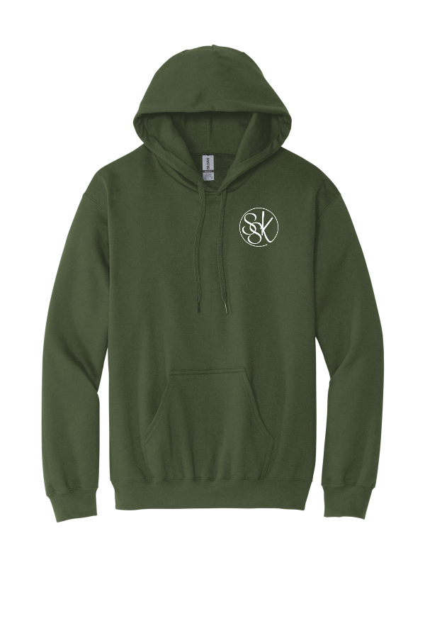 SSK Design #1 Hoodie Gildan Softstyle Pullover Hooded Sweatshirt 8.4-ounce 80/20 ring spun cotton/poly75/25 ring spun cotton/poly (Ring Spun Sport Grey)50/50 ring spun cotton/poly (Dark Heather) Two-end ring spun cotton face fabric Two-piece dyed-to-match jersey fabric-lined hood Double-needle hem and topstitching on outside of hood seam 3/8-inch flat drawcords Dropped shoulder 1x1 rib knit with spandex cuffs and bottom band Tubular body Classic fit Tearaway label Select colors up to 5XL Product Spec Sheet Color Swatch