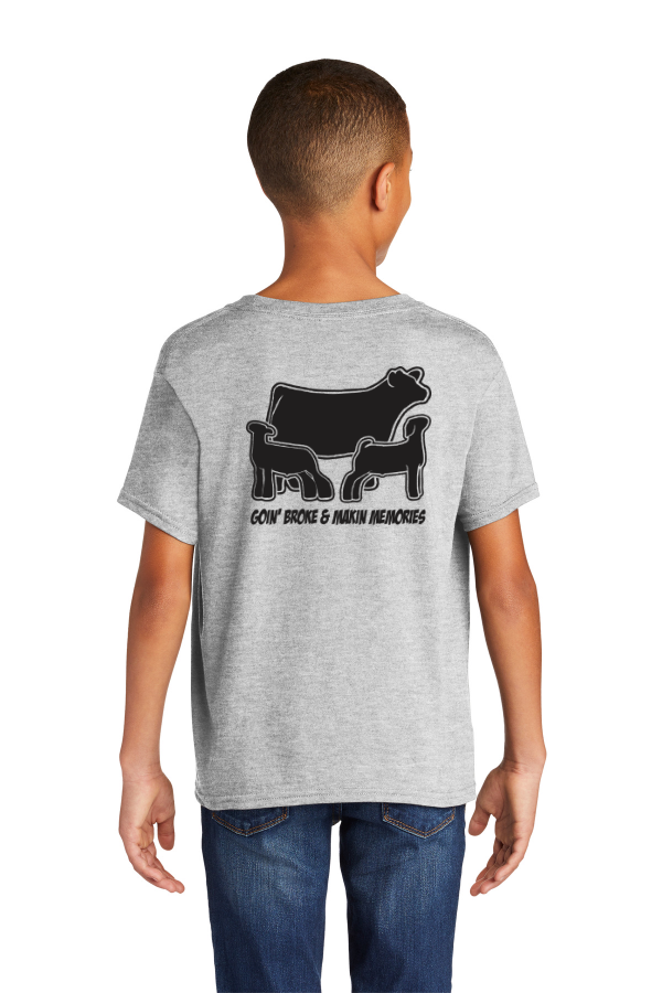 YOUTH Goin Broke Tee Gildan Youth Softstyle T-Shirt 4.5-ounce 100% ring spun US cotton90/10 ring spun cotton/poly (Sport Grey)65/35 poly/ring spun cotton (Dark Heather Heather Navy Heather Royal) Seamless double-needle neckTaped neck and shouldersRecycled high-performing black tear-away labelModern classic fit seamless body (Side seam on size XS)Double-needle sleeves and hemPlease note: This product is transitioning from tear-away labels to recycled high-performing black tear-away labels. Your order may contain a combination of both labels. Product Spec Sheet Color Swatch