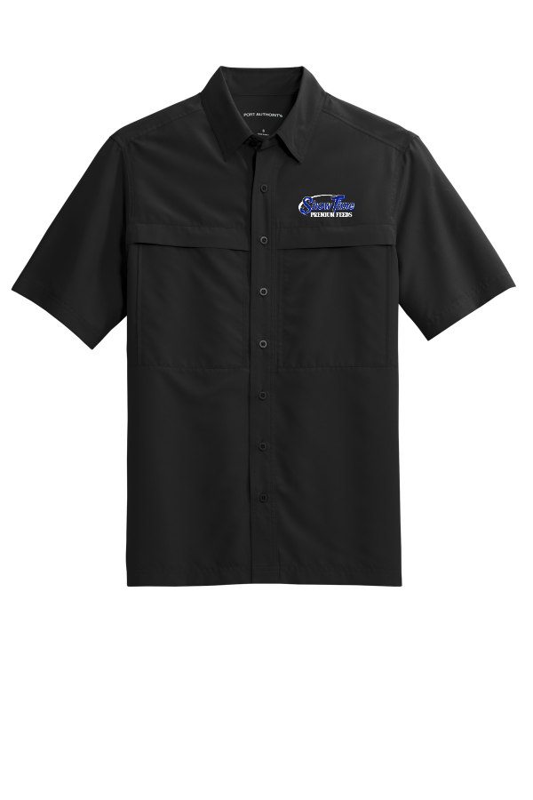 Embroidered Daybreak ShirtPort Authority Short Sleeve UV Daybreak ShirtSun and moisture are no problem for this versatile lightweight highly breathable shirt. Relaxed styling makes it perfect for outdoor or indoor wear.2.2-ounce 100% polyester poplin2.5-ounce 100% polyester poplin (White)2.1-ounce 100% polyester poplin (Plaids)Moisture-wickingUPF rating of 30Hidden button-down collarDyed-to-match buttonsTranslucent buttons (Plaids)Two chest pockets with concealment flaps and hook and loop closures Vented back panel with mesh ventilationStraight hem with side ventsProduct MeasurementsProduct Spec Sheet Color Swatch |