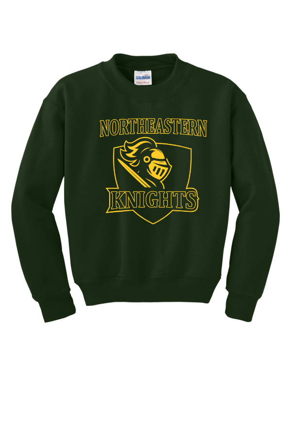 YOUTH Sheild Crewneck SweatshirtGildan Youth Heavy Blend Crewneck Sweatshirt.8-ounce 50/50 cotton/poly Double-needle stitching at waistband and cuffs 1x1 rib knit collar cuffs and waistband with spandexRecycled high-performing black tear-away labelPlease note: This product is transitioning from tear-away labels to recycled high-performing black tear-away labels. Your order may contain a combination of both labels.Product MeasurementsProduct Spec Sheet |