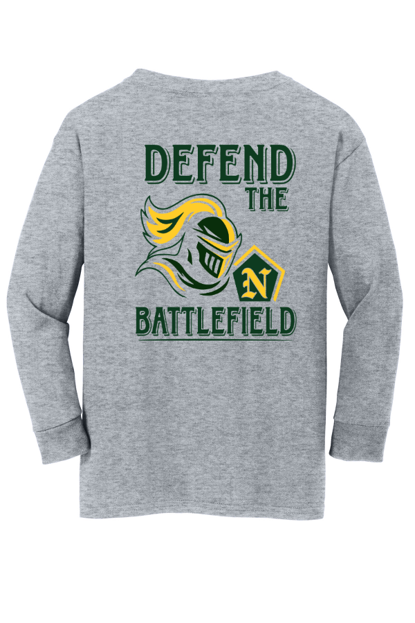 YOUTH Defend Long Sleeve TeeGildan Youth Heavy Cotton 100% Cotton Long Sleeve T-Shirt.5.3-ounce 100% cotton 90/10 cotton/poly (Sport Grey) Non-topstitched classic width rib collar Taped neck and shouldersRecycled high-performing black tear-away label Rib knit cuffsClassic fit side seamedPlease note: This product is transitioning from tear-away labels to recycled high-performing black tear-away labels. Your order may contain a combination of both labels.Product MeasurementsProduct Spec Sheet |