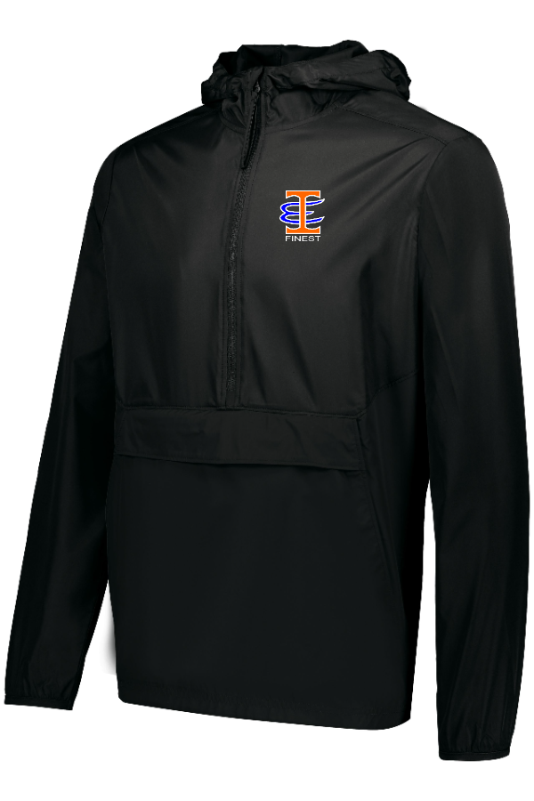 YOUTH Embroidered Pack PulloverHolloway Youth Pack Pullover* 100% polyester MicroTec soft micro denier fabric with PU coating for water-resistance * Woven label * Half-zip pullover style * Set-in sleeves * Jacket folds up into zippered front pocket * Spandex bound cuff |