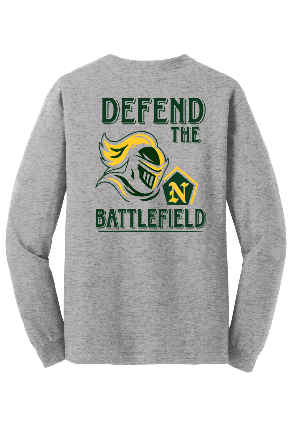 Defend Long Sleeve TeeGildan - Heavy Cotton 100% Cotton Long Sleeve T-Shirt.5.3-ounce 100% US cotton 99/1 cotton/poly (Ash) 90/10 cotton/poly (Sport Grey) 50/50 cotton/poly (Dark Heather Graphite Heather Safety Green Safety Orange)Non-topstitched classic width rib collarRecycled high-performing black tear-away label Taped neck and shouldersRib knit cuffsClassic fit seamless bodyPlease note: This product is transitioning from tear-away labels to recycled high-performing black tear-away labels. Your order may contain a combination of both labels.Product MeasurementsProduct Spec Sheet |