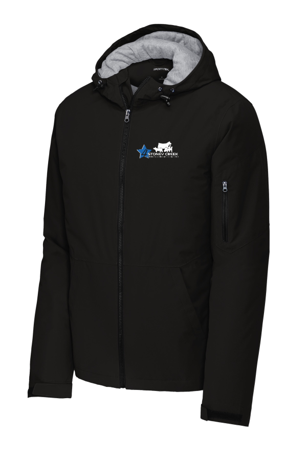 Waterproof Insulated Jacket Embroidered Sport-Tek Waterproof Insulated Jacket This fully seam-sealed insulated jacket offers outstanding wind-resistant water-repellent protection to help keep you dry in the stands or on the street. 100% polyester with waterproof face coating Jersey-lined body and hood 2.4-ounce polyfill insulation in body 1.8-ounce polyfill insulation in hood and sleeves Polyester taffeta sleeves for easy on/off 5000MM fabric waterproof rating 3000G/M2 fabric breathability rating Tag-free label Three-panel hood with drawcord and toggles Exposed molded zipper Left arm zippered pocket Adjustable self-fabric tab cuffs with hook and loop closures Front pouch pocket Decoration access pocket Adjustable locking drawcord at hem Product Spec Sheet