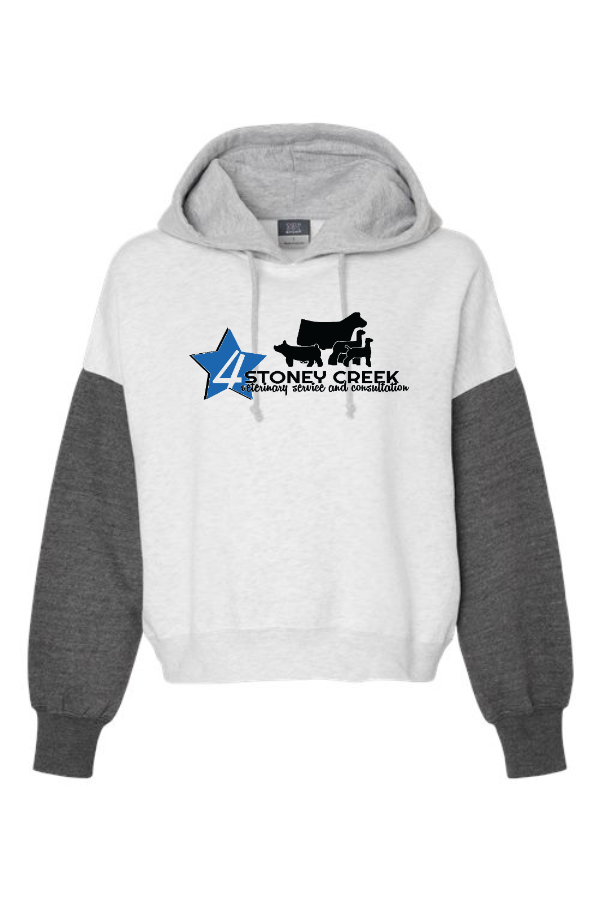Women's Colorblocked Crop Hooded Sweatshirt MV Sport Women's Sueded Fleece Colorblocked Crop Hooded Sweatshirt 7 oz./yd², 65/35 cotton/polyester