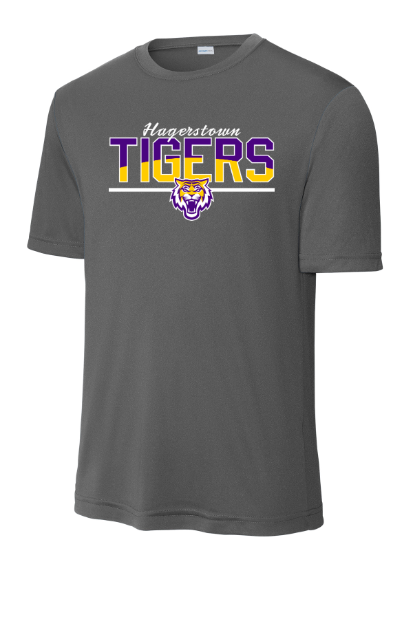 Curved Tigers Dri Fit TeeSport-Tek PosiCharge Competitor Tee.Lightweight roomy and highly breathable these moisture-wicking value-priced tees feature PosiCharge technology to lock in color and prevent logos from fading.3.8-ounce 100% polyester interlock with PosiCharge technology Removable tag for comfort and relabeling Set-in sleevesGiven the extreme heat required for sublimation please consult with your decorator. It is highly recommended to sample test product by color before production.Product MeasurementsProduct Spec Sheet |
