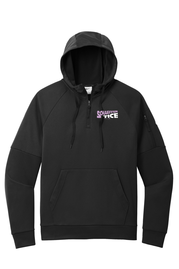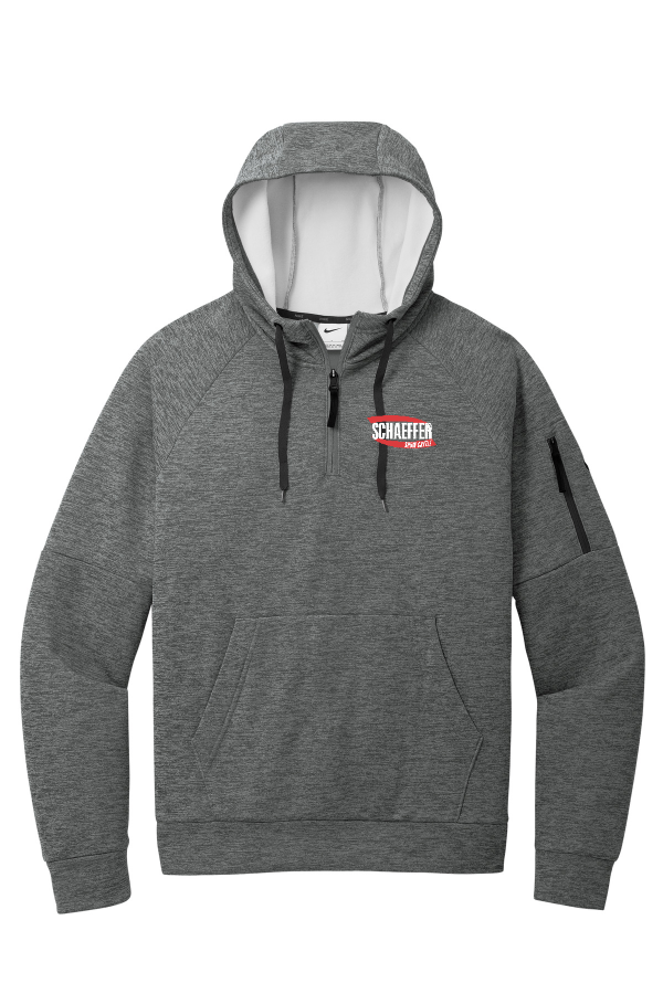 Therma-FIT Pocket 1/4-Zip Fleece Hoodie Nike Therma-FIT Pocket 1/4-Zip Fleece Hoodie This 1/4-zip hoodie with a zippered left arm pocket brings the heat to your workout with Therma-FIT fabric. Therma-FIT helps manage your body s natural heat to keep warm in cold-weather conditions. The design includes a three-panel hood with black drawcords a dyed-to-match zipper and a front pouch pocket. Self-fabric cuffs and hem. A contrast Swoosh logo is embroidered on left sleeve. A contrast Therma-FIT logo is embroidered on back hem. Made of 7.4-ounce polyester Therma-FIT fabric with at least 50% recycled content. Product Spec Sheet