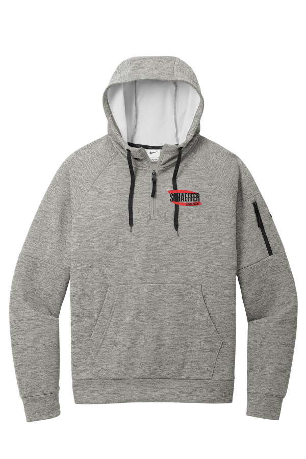 Description This 1/4-zip hoodie with a zippered left arm pocket brings the heat to your workout with Therma-FIT fabric. Therma-FIT helps manage your body s natural heat to keep warm in cold-weather conditions. The design includes a three-panel hood with black drawcords a dyed-to-match zipper and a front pouch pocket. Self-fabric cuffs and hem. A contrast Swoosh logo is embroidered on left sleeve. A contrast Therma-FIT logo is embroidered on back hem. Made of 7.4-ounce polyester Therma-FIT fabric with at least 50% recycled content.